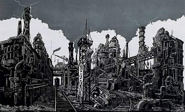 — Я родился в 1991 году, через месяц Советский Союз рухнул. И меня еще подростком стала привлекать эта атмосфера оставленности, руинированности. У нас в городе было огромное количество закрывшихся фабрик и заводов. Эти корпуса в промзонах являлись носителями духа ушедшей эпохи, которую я никогда не видел. И в этом было какое-то уходящее величие. Разруха и величие — две вещи, которые в сочетании вдохновляли, и это хотелось как-то художественно подчеркнуть, отобразить на этих же стенах. Эти формы навевали собственный конструктивизм. Я прямо видел в этом определенный стиль, который меня как художника интуитивно притягивал.