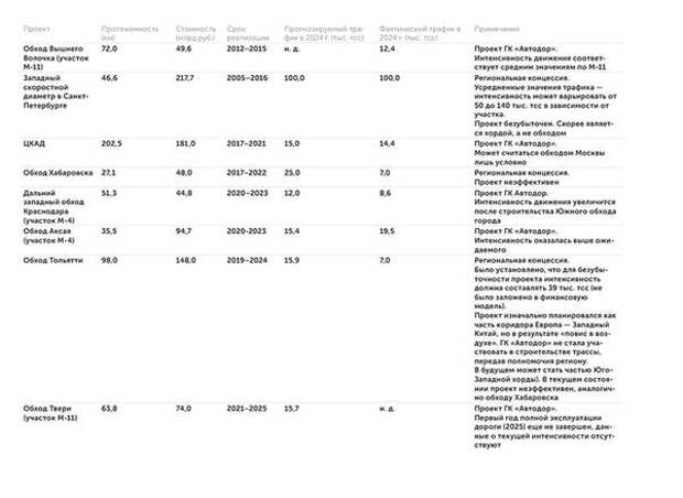 Имеют все шансы выйти на безубыточный уровень и те проекты, где обходы городов являются элементами более крупных транспортных проектов. Мы это уже видим на примере обхода Аксая, где эта платная дорога является частью федеральной трассы М-4 «Дон». Скорее всего, сойдется финансовая модель для платного обхода Твери на трассе М-11 «Нева», заработавшего в текущем году и достаточными данными по фактическому трафику на котором мы пока не располагаем, а также обхода Краснодара в составе М-4 после завершения строительства его южной части (дальний западный обход столицы Кубани пока отстает от целевого трафика примерно на треть). Хорошие шансы у планирующихся к реализации платных обходов Нижнекамска и Набережных Челнов в составе федеральной трассы М-12.