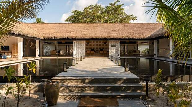 Виллы — на пляже или над водой — оформлены в минималистичном стиле с натуральными материалами, панорамными окнами и просторными террасами. Здесь можно встречать рассвет с видом на океан или шагнуть прямо в тёплую лагуну.