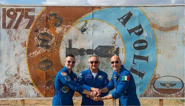 И сегодня на Байконуре российские и международные участники космических полетов любят сделать фото на память около немного потрепанного временем оригинального плаката программы «Союз — Аполлон». Члены экипажа Экспедиции 60 Эндрю Морган из NASA, Александр Скворцов из «Роскосмоса» и Лука Пармитано из Европейского космического агентства (ESA) позируют 5 июля перед росписью с эмблемой миссии «Союз» — «Аполлон» 1975 года