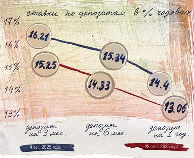 Ко всем этим стратегиям стоит добавить одну особенность. Банки могут заметно менять условия по своим вкладам с различной длительностью — причем менять в разные стороны. Например, Т-банк в сентябре поднял ставку до 17% на вклады без пополнения длительностью один месяц, а ВТБ повысил ставки по «ВТБ-вкладу» на три и четыре месяца, но значительно снизил их на других сроках. Кроме того, в ряде случаев автопролонгация вклада предусматривает меньшую ставку, чем если клиент «переложится» сам, закрыв старый депозит и открыв новый.