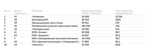 ТОП-10 самых быстрорастущих машиностроительных компаний